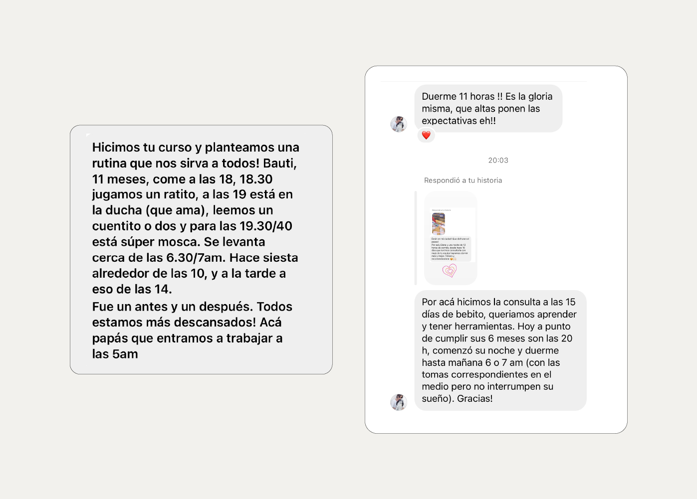 Lo viví en carne propia y lo veo todos los días en las familias que acompañamos. La falta de sueño vuelve todo más cuesta arriba: las rutinas, el vínculo, la paciencia, el disfrute. Por eso, junto a mi equipo, creamos recursos y estrategias claras, prácticas y respetuosas, para ayudarte a acompañar el sueño de tu hijo en cada etapa, sin dejar de lado el apego ni tus valores. Estamos acá para decirte que no estás sola, y que sí: es posible volver a descansar.